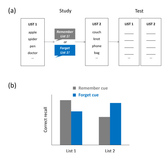 61. Pastötter, B.; Bäuml, K.-H. The crucial role of postcue encoding in directed forgetting and context-dependent forgetting. J. Exp. Psychol. Learn. Mem. Cogn. 2007, 33, 977–982. [Google Scholar] [CrossRef]