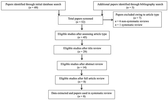 PRISMA flowchart of search strategy for systematic review.