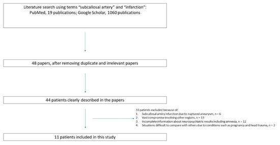 - Xu, S.Y.; Xi, F.C.; Wu, X.W.; Li, C.X. Ischemic stroke in the combined territories of the septum pellucidum and the cingulate gyrus: A case report and literature review. Medicine (Baltimore) 2019, 98, e15879. [Google Scholar] [CrossRef]