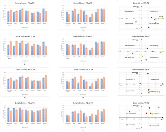 3.3. Comparative Analysis of Colour Stimuli between the PE and VR