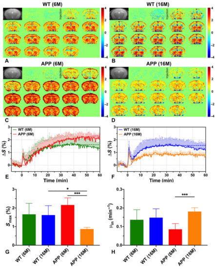 - Praet, J.; Bigot, C.; Orije, J.; Naeyaert, M.; Shah, D.; Mai, Z.; Guns, P.-J.; Van Der Linden, A.; Verhoye, M. Magnetization transfer contrast imaging detects early white matter changes in the APP/PS1 amyloidosis mouse model. NeuroImage Clin. 2016, 12, 85–92. [Google Scholar] [CrossRef]