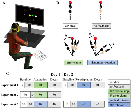 - Maresch, J.; Werner, S.; Donchin, O. Methods matter: Your measures of explicit and implicit processes in visuomotor adaptation affect your results. Eur. J. Neurosci. 2021, 53, 504–518. [Google Scholar] [CrossRef] [PubMed]
