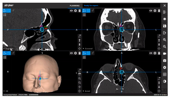 Preoperative planning with the Stryker Scopis neuronavigation system (Stryker Corporation, Kalamazoo, MI, USA). This system utilizes “building blocks” technology to highlight designated anatomical landmark. Reprinted/adapted with permission from Ref. [25]. 2022, Stryker Corporation.