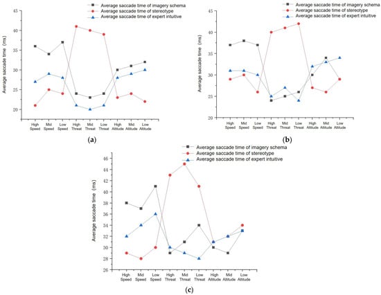 Average eye jump time. (a) 2000 ms; (b) 4000 ms; (c) 6000 ms.