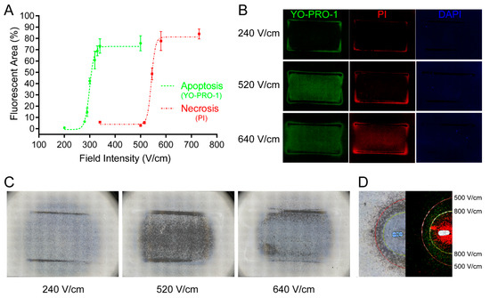 3.1. Electric Field Intensity Threshold for Apoptosis/Necrosis of U251 Glioma Cell Line