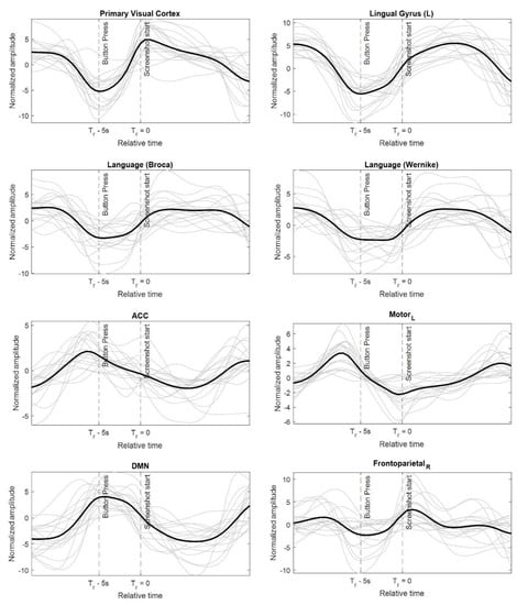 - Gonzalez-Castillo, J.; Saad, Z.S.; Handwerker, D.A.; Inati, S.J.; Brenowitz, N.; Bandettini, P.A. Whole-brain, time-locked activation with simple tasks revealed using massive averaging and model-free analysis. Proc. Natl. Acad. Sci. USA 2012, 109, 5487–5492. [Google Scholar] [CrossRef]