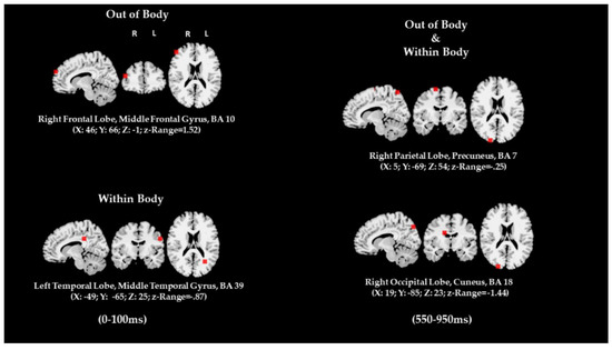 - D’Angiulli, A.; Kenney, D.; Pham, D.A.T.; Lefebvre, E.; Bellavance, J.; Buchanan, D.M. Neurofunctional Symmetries and Asymmetries during Voluntary out-of- and within-Body Vivid Imagery Concurrent with Orienting Attention and Visuospatial Detection. Symmetry 2021, 13, 1549. [Google Scholar] [CrossRef]