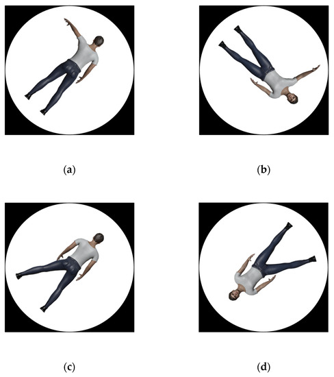 Depiction of the realistic stimuli in Study 2. (a) Back view of the left arm raised. (b) Front view of the right arm raised. (c) Back view of the left leg raised. (d) Front view of the right foot raised.
