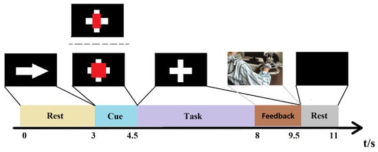 Stroke leads to high rates of disability and death worldwide [1]. To restore brain function affected by stroke, patients need to undergo rigorous rehabilitation. Currently, there are a variety of approaches to help restore motor function after a stroke, including the use of mirror therapy [2], virtual reality [3], aerobic exercise [4], and brain–computer interface (BCI) technology [5,6,7]. BCI technology can help patients recover independently and perform tasks by efficiently controlling additional devices, making it a good option for patients.