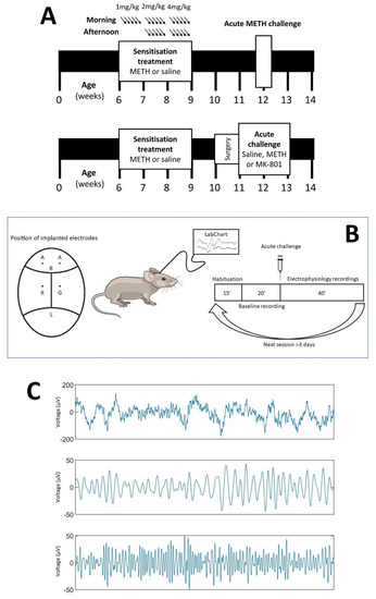 - Janetsian, S.S.; Linsenbardt, D.N.; Lapish, C.C. Memory impairment and alterations in prefrontal cortex gamma band activity following methamphetamine sensitization. Psychopharmacology 2015, 232, 2083–2095. [Google Scholar] [CrossRef]