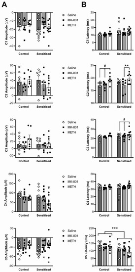 3.4. Effects of Sensitisation to METH and Acute Drug Challenges on ERP Components
