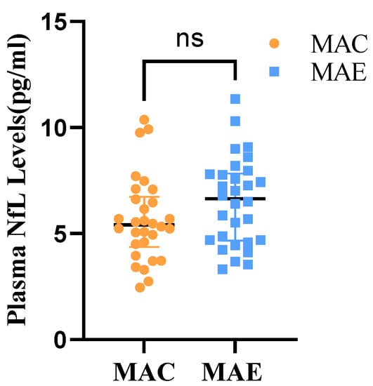 Plasma NfL levels in MAE group and MAC group. ns: There was no significant difference in Plasma NfL in the MAE group compared with the MAC group.