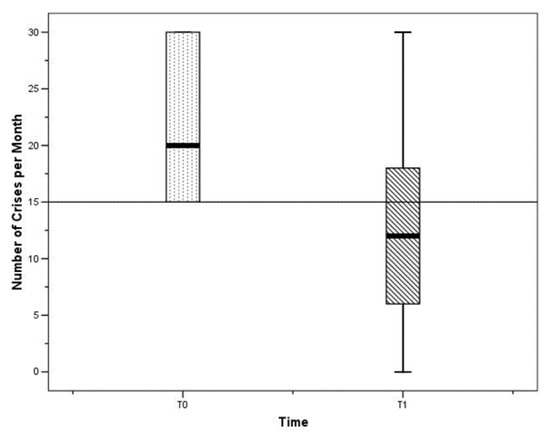 Differences between T0 and T1 in the monthly number of crises.