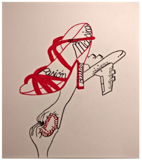 Figure 1): “My work is composed of two sandals that my classmate has given me (...) Once I saw them, I told her that their shape could give us a lot more information and meaning to my work, since their intertwined structure could be related to the way of thinking of my interviewee, since she considers that many concepts, such as education and all current problems, are linked...” (SABE)