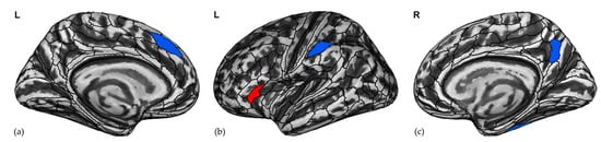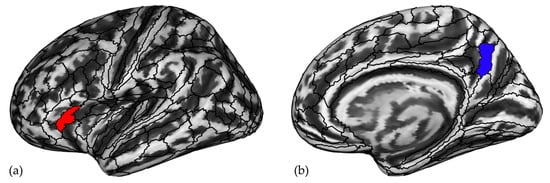 - Glasser, M.F.; Coalson, T.S.; Robinson, E.C.; Hacker, C.D.; Harwell, J.; Yacoub, E.; Ugurbil, K.; Andersson, J.; Beckmann, C.F.; Jenkinson, M.; et al. A Multi-Modal Parcellation of Human Cerebral Cortex. Nature 2016, 536, 171–178. [Google Scholar] [CrossRef] [PubMed]
