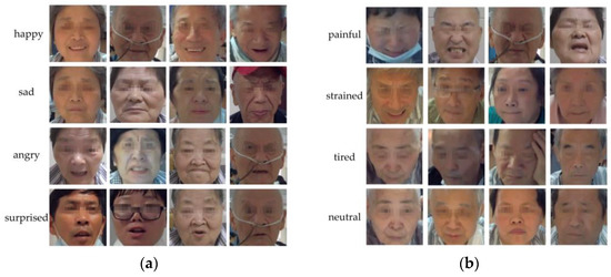 Partial samples of the private dataset: (a) these four basic expressions are used to assess training attention and positivity of stroke patients; (b) these four special expressions are used to determine whether the training intensity is proper for the patient.