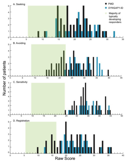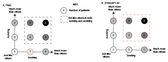 3.2. Both PMD and SYNGAP1-ID Patients Score High in Avoiding and Seeking