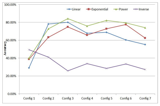 According to its nature, the output of the inverse encoding method can easily be clustered in the first 20 ms. When no convolution or pooling optimization is involved (Configuration 1), the distribution of the feature information in the image is concentrated. Thus the inverse encoding method is more suitable and generates the best accuracy result. However, if convolution and pooling preprocessing is involved, information is more diversified, and more different image features are obtained, so the spiking time distribution is wider and not only focused on the first 20 ms, so the effect of the inverse function is reduced.