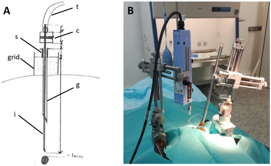 The surgery took place in a BSL2 sterile surgical suite, under aseptic conditions and general anesthesia. Physiological constants were monitored continuously, and the animal received appropriate analgesia and antibiotic treatments. The injecting device (