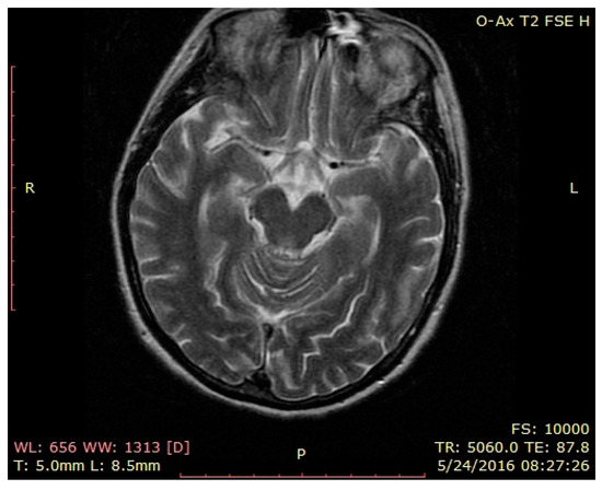 Brain MRI—normal findings (T2 weighted brain scan), axial temporal image.