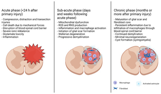 2. Different Phases of Traumatic SCI and Its Complex Pathophysiology