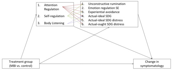 3.5.2. Is the Impact of an MBI on Symptomatology Mediated by BA Alongside Other Psychological Variables?
