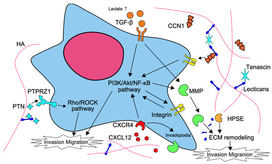 - Ferrer, V.P.; Moura-Neto, V.; Mentlein, R. Glioma infiltration and extracellular matrix: Key players and modulators. Glia 2018, 66, 1542–1565. [Google Scholar] [CrossRef]