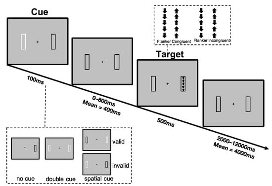 - Fan, J.; McCandliss, B.D.; Sommer, T.; Raz, A.; Posner, M.I. Testing the efficiency and independence of attentional networks. J. Cogn. Neurosci. 2002, 14, 340–347. [Google Scholar] [CrossRef] [PubMed]