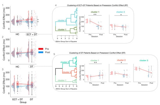 3.3. Exploratory Cluster Analysis Conducted Separately for the ECT and DT Groups on RT CE