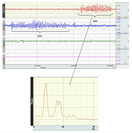 Figure shows examples of SWDs and the power spectra of EEG during the SWD in WAG/Rij rats.