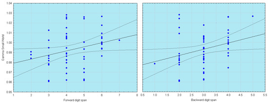 Scatterplots of SW index correlation with memory tasks. Less ordered brain network (as reflected by increasing value of SW) in the gamma band is associated with better memory performance. Adapted from [48].