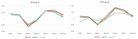 However, some consistent results are available. In general, a decrease in PL was found in the lower alpha [38,39] and gamma bands [38], whereas an increase was found in the theta band [40] and in both the delta and theta bands [41].