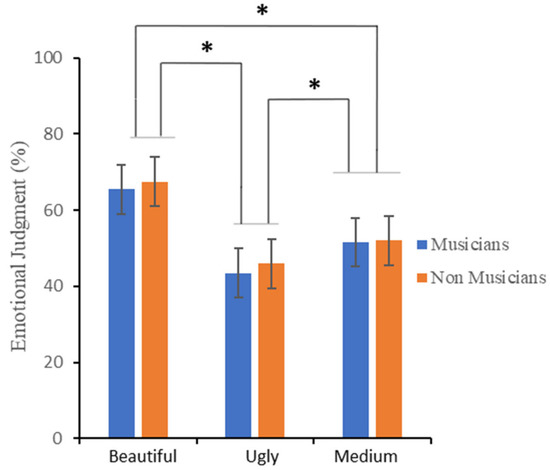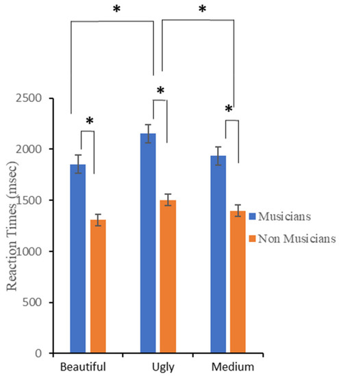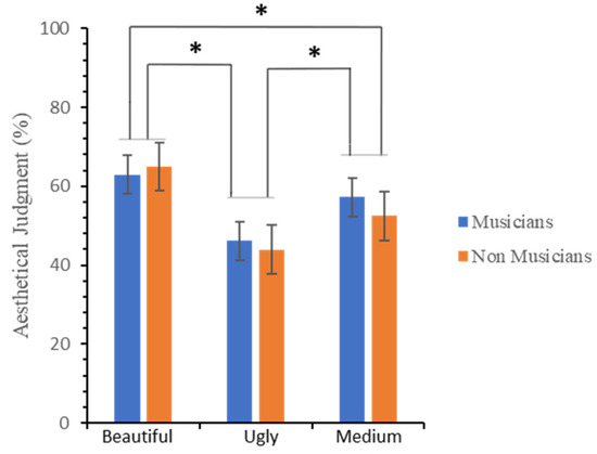 - Müller, M.; Höfel, L.; Brattico, E.; Jacobsen, T. Aesthetic judgments of music in experts and laypersons—An ERP study. Int. J. Psychophysiol. 2010, 76, 40–51. [Google Scholar] [CrossRef]
