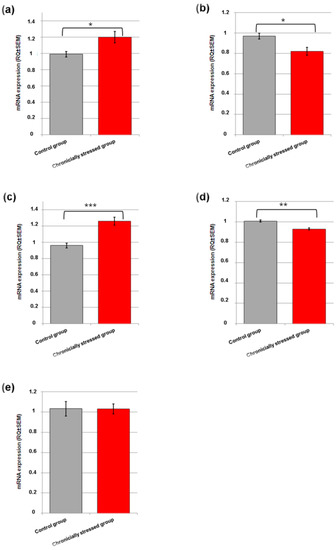 - Herbet, M.; Korga, A.; Gawrońska-Grzywacz, M.; Izdebska, M.; Piątkowska-Chmiel, I.; Poleszak, E.; Wróbel, A.; Matysiak, W.; Jodłowska-Jędrych, B.; Dudka, J. Chronic Variable Stress Is Responsible for Lipid and DNA Oxidative Disorders and Activation of Oxidative Stress Response Genes in the Brain of Rats. Oxid. Med. Cell。 Longev. 2017, 2017, 7313090. [Google Scholar] [CrossRef] [PubMed] [Green Version]
