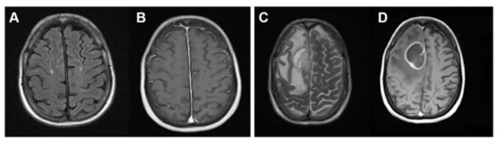 - Werneck, L.C.; Scola, R.H.; Arruda, W.O.; Torres, L.F. Glioma and multiple sclerosis: Case report. Arq. Neuropsiquiatr. 2002, 60, 469–474. [Google Scholar] [CrossRef] [Green Version]