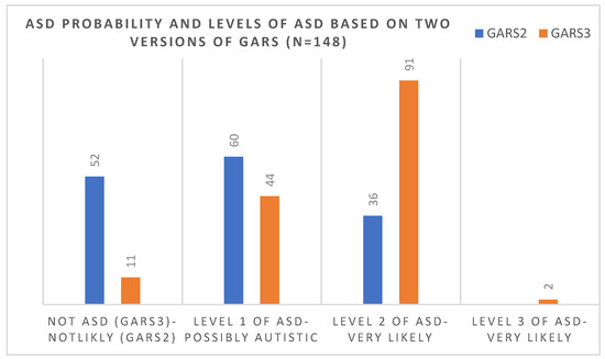 Out of 93 children who were referred as having ASD, all confirmed the diagnosis using the second version of GARS. While three (5%) out of 55 individuals recruited as having ID also received a diagnosis of ASD (95 cases in all “65%”). Using the 3rd version of GARS increased the level of diagnosis. Not only did all the ASD cases receive the diagnosis, but out of 55 children referred to as having ID, 44 (80%) children received the diagnosis of ASD.