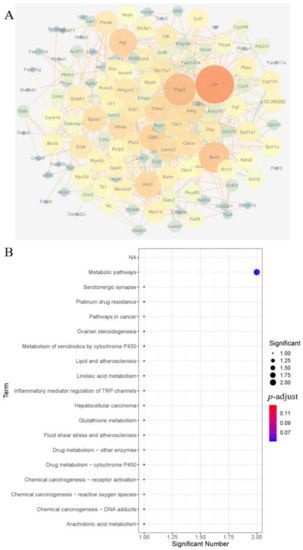 3.3.4. Analysis of a Differential Gene Interaction Network Regulated by Nuciferine and Enrichment of KEGG Pathway