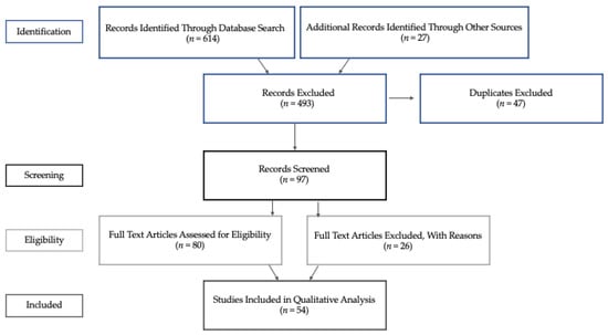 The authors worked with the Boston University Sargent College of Health and Rehabilitation Sciences medical librarian to develop and execute a literature search. Four electronic databases were deemed appropriate for the research topic: PubMed, Embase, PsycInfo, and Cumulative Index of Nursing and Allied Health Literature (CINAHL). Search terms were developed to include the population demographics and means of assessment (Table 1). Search results were exported to Mendeley, a reference management software, and shared among the authors for review and selection based on inclusion and exclusion criteria. This search was supplemented with references on the Baby Siblings Research Consortium (BSRC) website: https://www.babysiblingsresearchconsortium.org/publications (accessed on 12 January 2022).