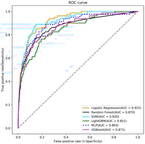 - Bradley, A.P. The use of the area under the ROC curve in the evaluation of machine learning algorithms. Pattern Recognit. 1997, 30, 1145–1159. [Google Scholar] [CrossRef] [Green Version]