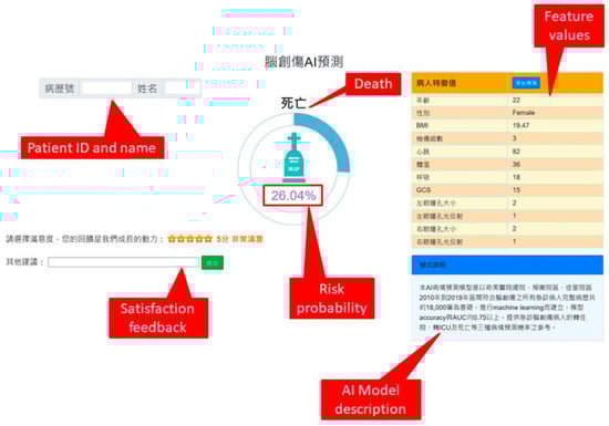 Chicago/Turabian StyleTu, Kuan-Chi, Tee-Tau Eric Nyam, Che-Chuan Wang, Nai-Ching Chen, Kuo-Tai Chen, Chia-Jung Chen, Chung-Feng Liu, and Jinn-Rung Kuo. 2022. "A Computer-Assisted System for Early Mortality Risk Prediction in Patients with Traumatic Brain Injury Using Artificial Intelligence Algorithms in Emergency Room Triage" Brain Sciences 12, no. 5: 612. https://doi.org/10.3390/brainsci12050612