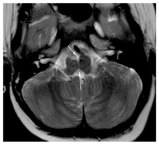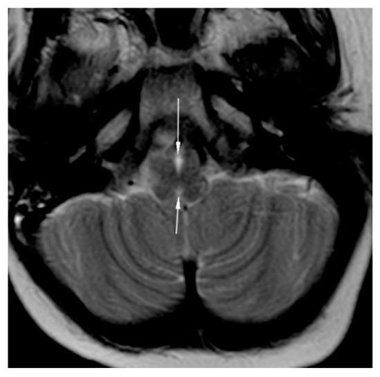 MRI brain axial T2-weighted image showing butterfly medulla oblongata.