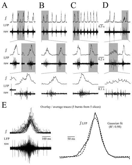 - Neuman, R.S.; Cherubini, E.; Ben-Ari, Y. Endogenous and network bursts induced by N-methyl-D-aspartate and magnesium free medium in the CA3 region of the hippocampal slice. Neuroscience 1998, 28, 393–399. [Google Scholar] [CrossRef]