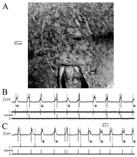 4.2. LC Synchrony Analysis with Combined LFP and Single Neuron Recording