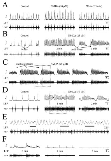 3.2. NMDA- and Glutamate-Evoked LFP Pattern Transformation