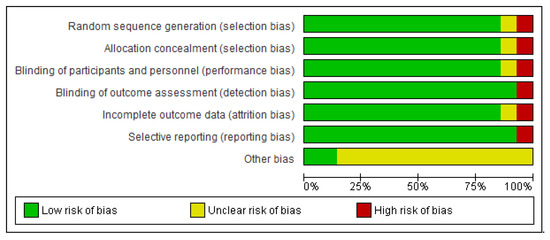 - Higgins, J.P.T.; Altman, D.G.; Gøtzsche, P.C.; Jüni, P.; Moher, D.; Oxman, A.D.; Savović, J.; Schulz, K.F.; Weeks, L.; Sterne, J.A.C. The Cochrane Collaboration’s tool for assessing risk of bias in randomised trials. BMJ 2011, 343, d5928. [Google Scholar] [CrossRef] [PubMed] [Green Version]