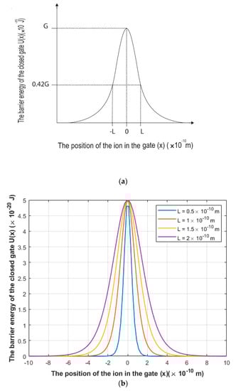 where U(x) is the energy barrier of the closed gate, G is the barrier height of the closed gate, x is the position of the ion in the gate, and L is the ‘gate length’ at which .