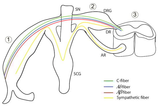 - Xie, W.; Strong, J.; Meij, J.; Zhang, J.-M.; Yu, L. Neuropathic pain: Early spontaneous afferent activity is the trigger. Pain 2005, 116, 243–256. [Google Scholar] [CrossRef]