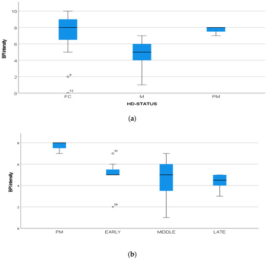 - Caraceni, A.; Mendoza, T.R.; Mencaglia, E.; Baratella, C.; Edwards, K.; Forjaz, M.J.; Martini, C.; Serlin, R.C.; de Conno, F.; Cleeland, C.S. A validation study of an Italian version of the brief pain inventory (Breve questionario per la valutazione del dolore). Pain 1996, 65, 87–92. [Google Scholar] [CrossRef]