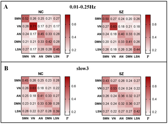 | Slow4 | visual network (VN) | somatosenery/motor and auditory network (SMN) | 0.311 (0.119) | 0.299 (0.108) | 0.613 |