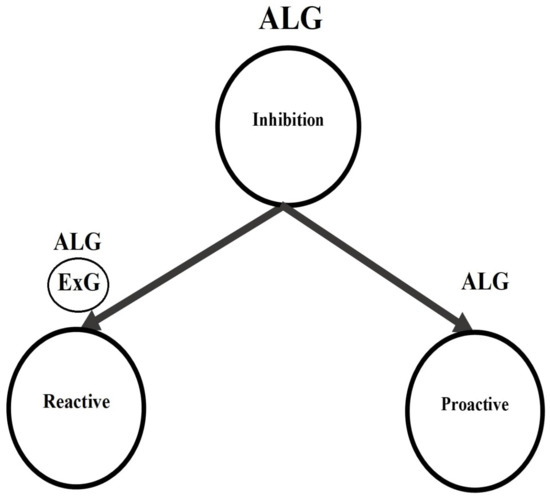 Inhibition components and their subtypes: current literature (path 1-1, 1-2-1, 1-2-2-1, 1-2-2-2, 2-1, 2-2-1, 2-2-2-1); this study (path 2-2-2-2).